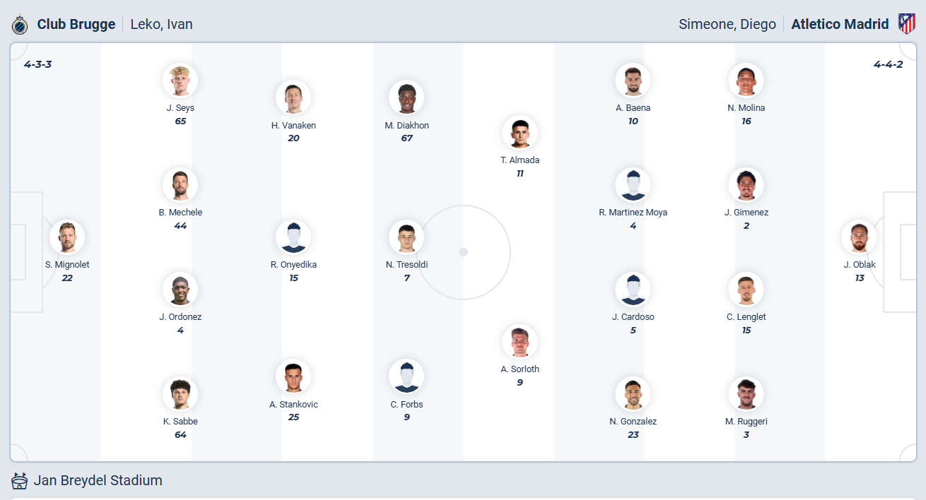 Nhận định soi kèo Club Brugge vs Atletico Madrid lúc 03h00 ngày 19/2/2026